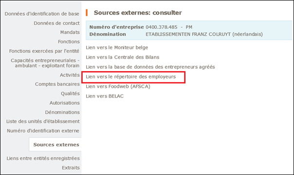 FOD Economie - SPF Economie , Raadpleging van de link naar het werkgeversrepertorium - Consultation du lien vers le répertoire des employeurs